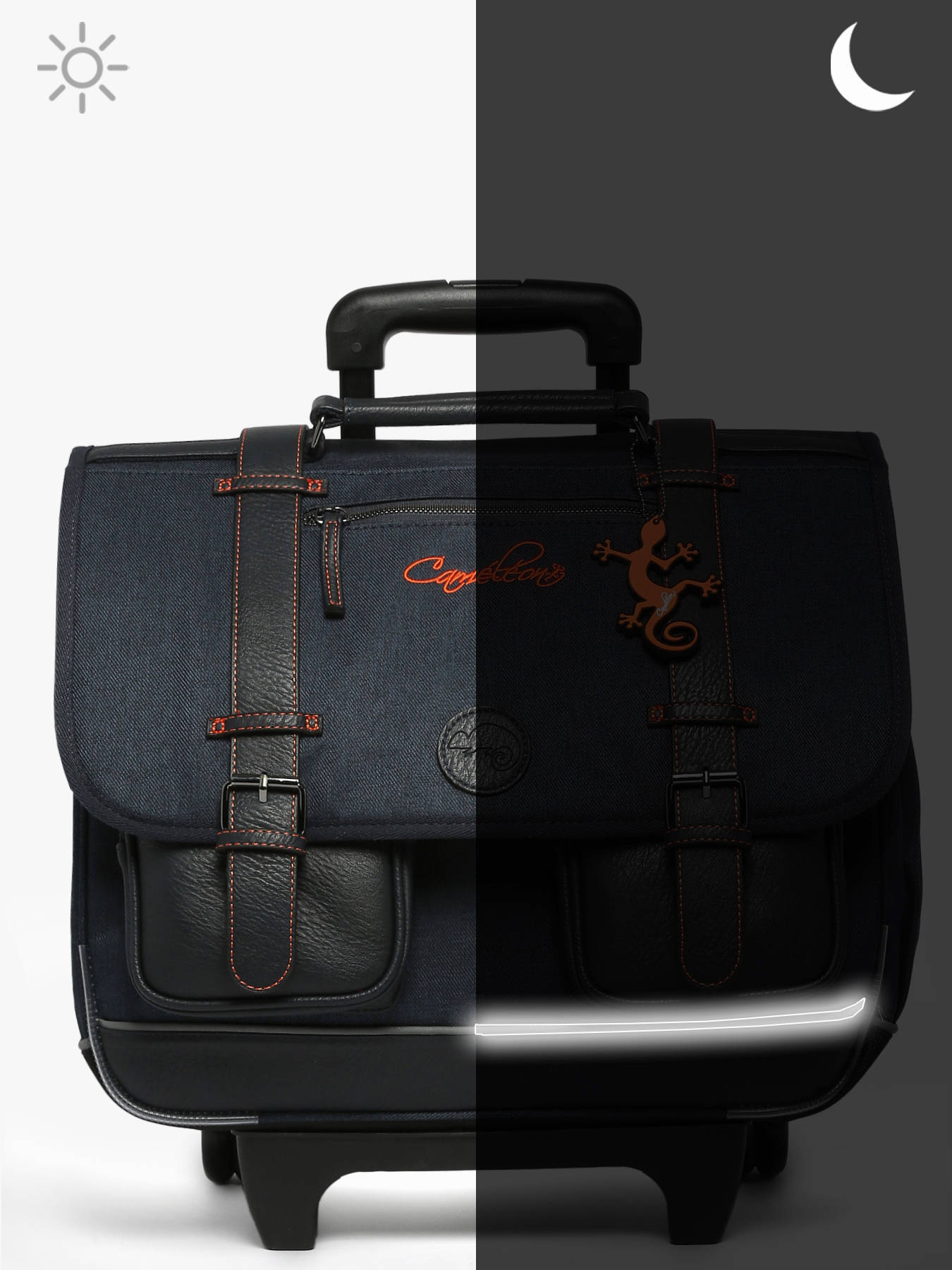 Boekentas op wieltjes 3 compartimenten van de lijn Vintage urban van Cameleon, om te dragen. Ideaal om A4-formaten en andere mee te nemen.