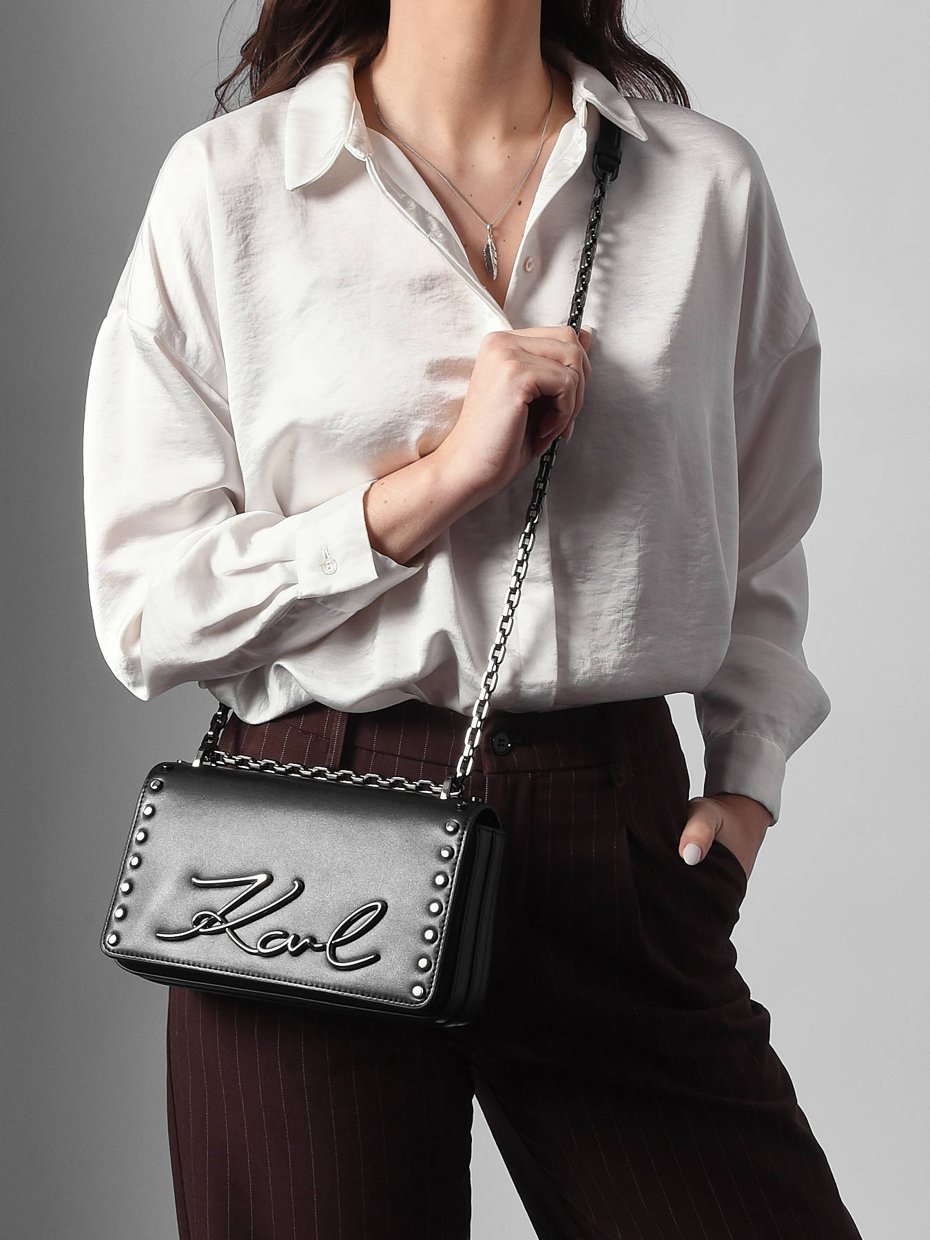 Cross body tas K Signature Studs leder KARL LAGERFELD