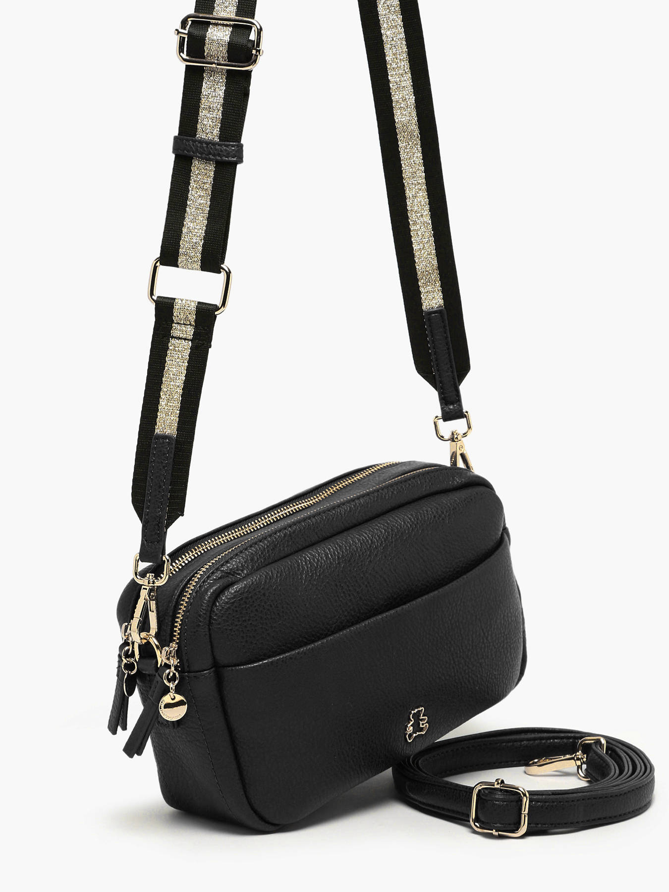 De Lulu Castagnette Soft-cross body tas combineert praktisch gebruik en stijl met een ontspannen elegantie. Gemaakt van stevig gecoate canvas, biedt hij een aangenaam gevoel en optimale duurzaamheid voor je dagelijkse verplaatsingen. De ritssluiting beveiligt je spullen, terwijl de voor- en achtervakken snelle toegang bieden tot je essentials. Binnenin zorgen twee goed ingedeelde compartimenten, samen met twee eenvoudige vakken en een vak met ritssluiting, voor een gemakkelijke organisatie van je persoonlijke bezittingen. De verstelbare en afneembare schouderriem garandeert een comfortabele draagstijl die zich aanpast aan je wensen. Met zijn strakke en eigentijdse ontwerp past deze tas moeiteloos bij elke outfit, of het nu gaat om een dag in de stad, een uitstapje met vrienden of een zakelijke afspraak. Veelzijdig, functioneel en elegant — de Lulu Castagnette Soft-tas is een onmisbare keuze voor een chique dagelijkse look.