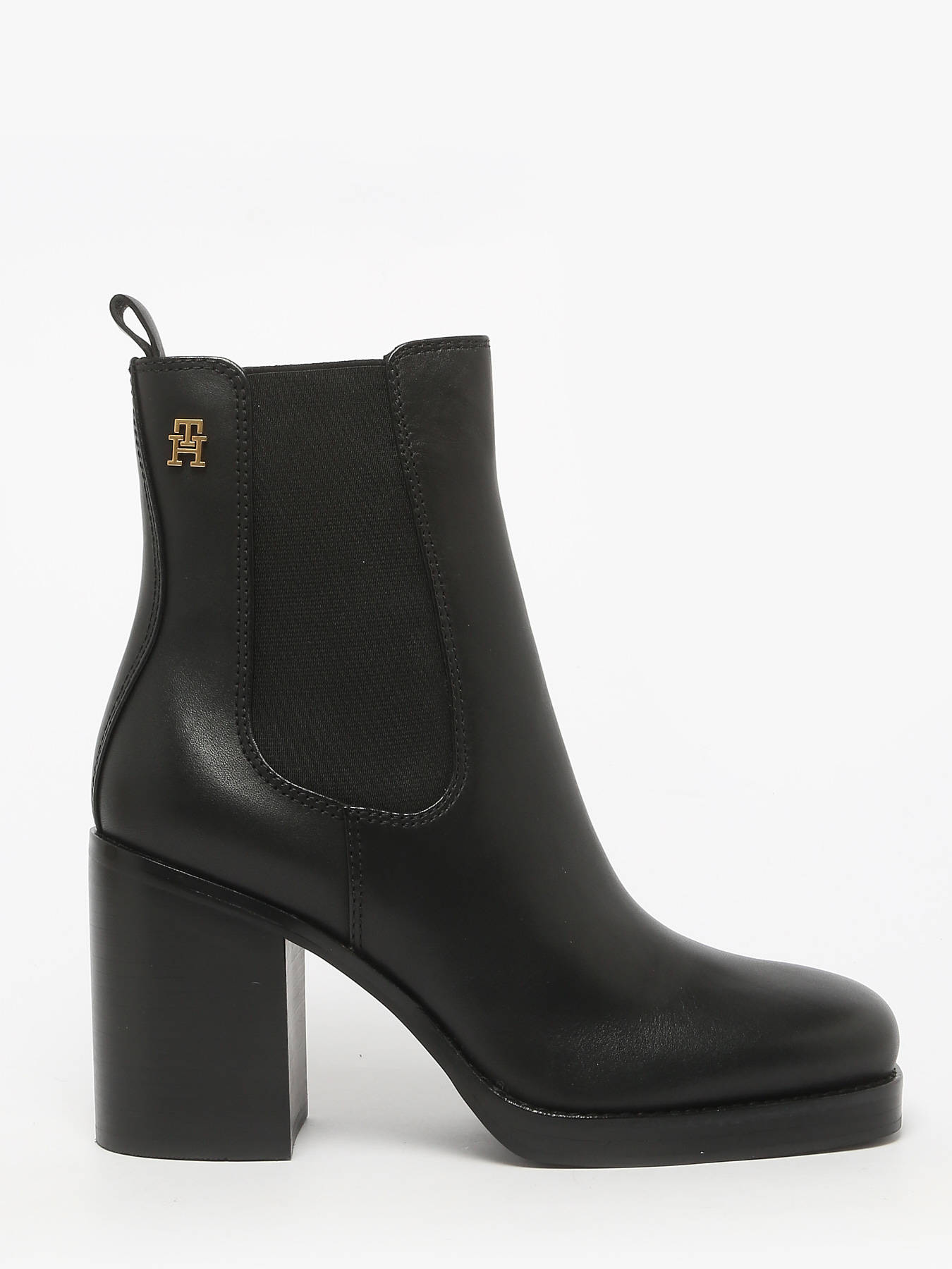 Enkellaarsjes met hak uit leder TOMMY HILFIGER