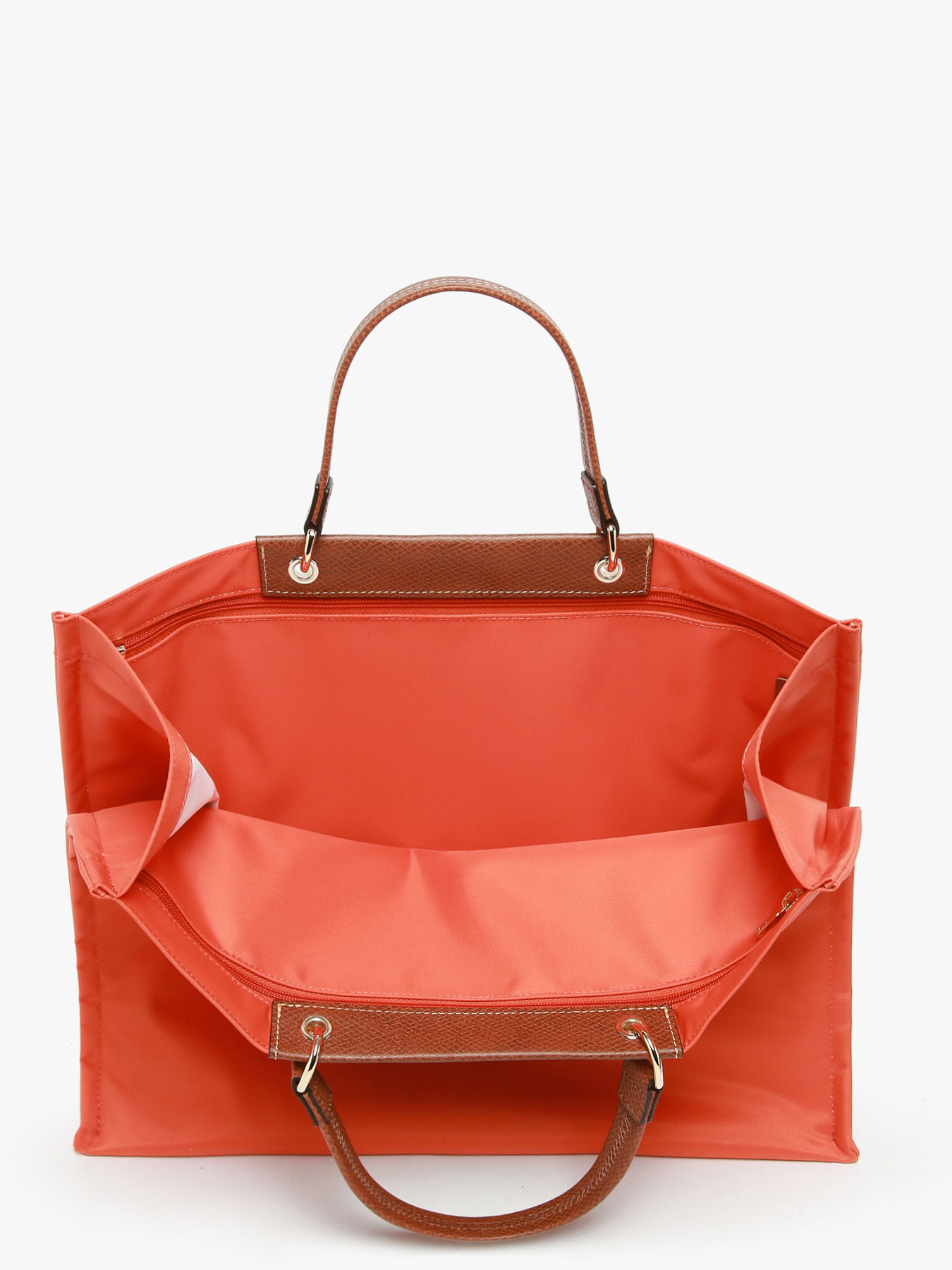 De L Cabas handtas van Longchamp is het perfecte model voor een elegante en praktische dagelijkse stijl. Gemaakt van lichtgewicht nylon en afgewerkt met leer, combineert het robuustheid en soepelheid. Het grote formaat biedt een indrukwekkende capaciteit om al je essentials mee te nemen. De iconische leren klep, versierd met de beroemde drukknoop, bevat een platte zak voor extra functionaliteit. Aan de binnenkant zorgen twee scheidingen, twee ritsvakken en een ruim compartiment voor een optimale organisatie. De lichte en flexibele nylon stof is beschikbaar in moderne en seizoensgebonden kleuren, die een verfrissende toets aan het ontwerp geven en het een dynamische uitstraling meegeven. Elegant, praktisch en tijdloos, heruitvindt deze cabas handtas het klassieke model met een urban en eigentijdse flair.