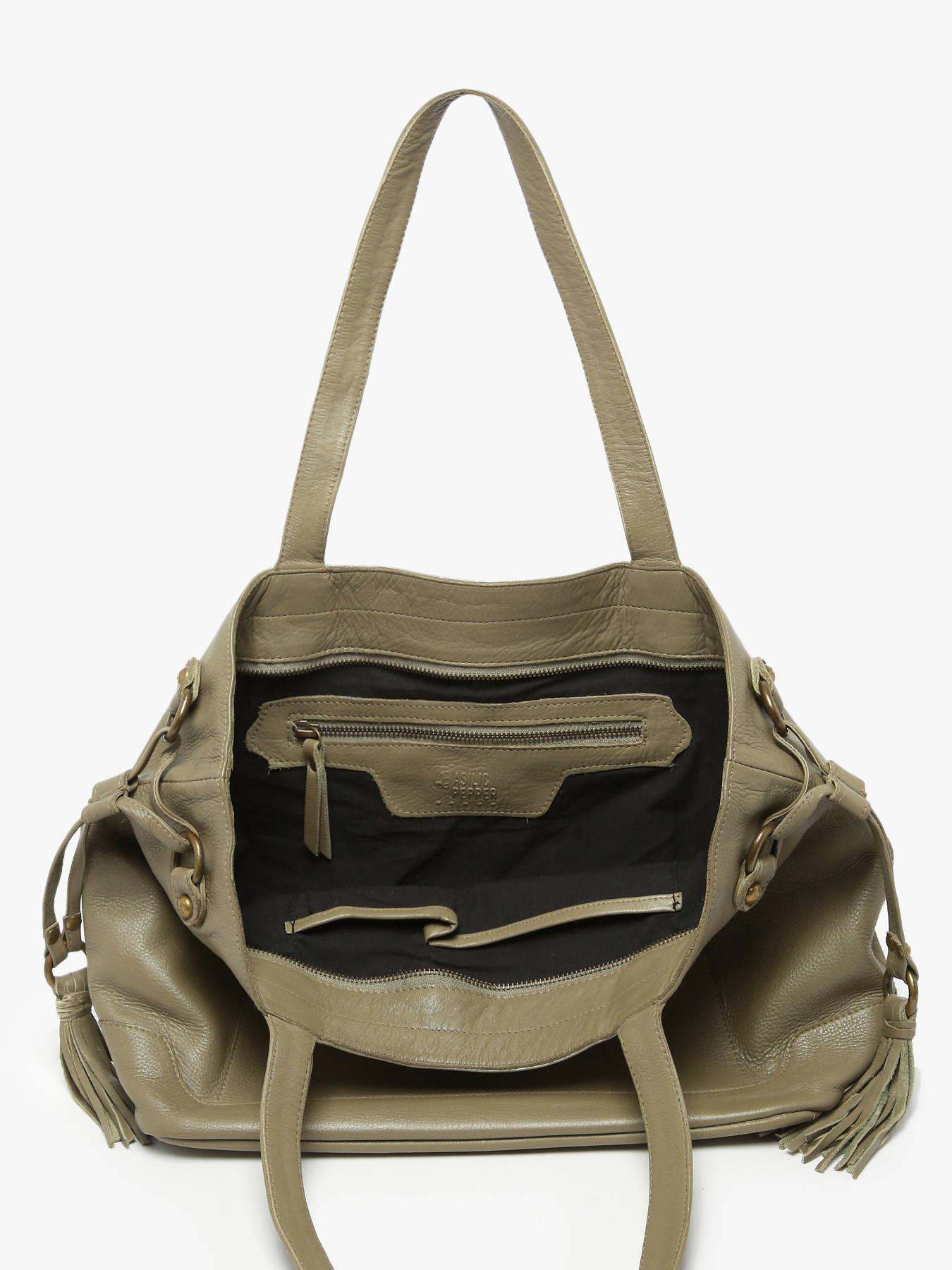 De bekende “Cow” collectie van Basilic Pepper krijgt er deze nieuwe schoudertas bij! Deze ruime tas werd, net zoals de andere Basilic Pepper handtassen, vervaardigd uit een hoogwaardig rundleder met een vintage look. Aan de zijkant werden speelse kwastjes toegevoegd voor een speelse touch. De Basilic Pepper tas sluit met behulp van een rits en beschikt over een ruim formaat om al jouw dagelijkse spulletjes in op te bergen. Binnenin heeft het ook twee open steekvakken en een ritsvak. De handvatten zijn 46cm en laten het toe om dit model kort onder de arm te dragen.