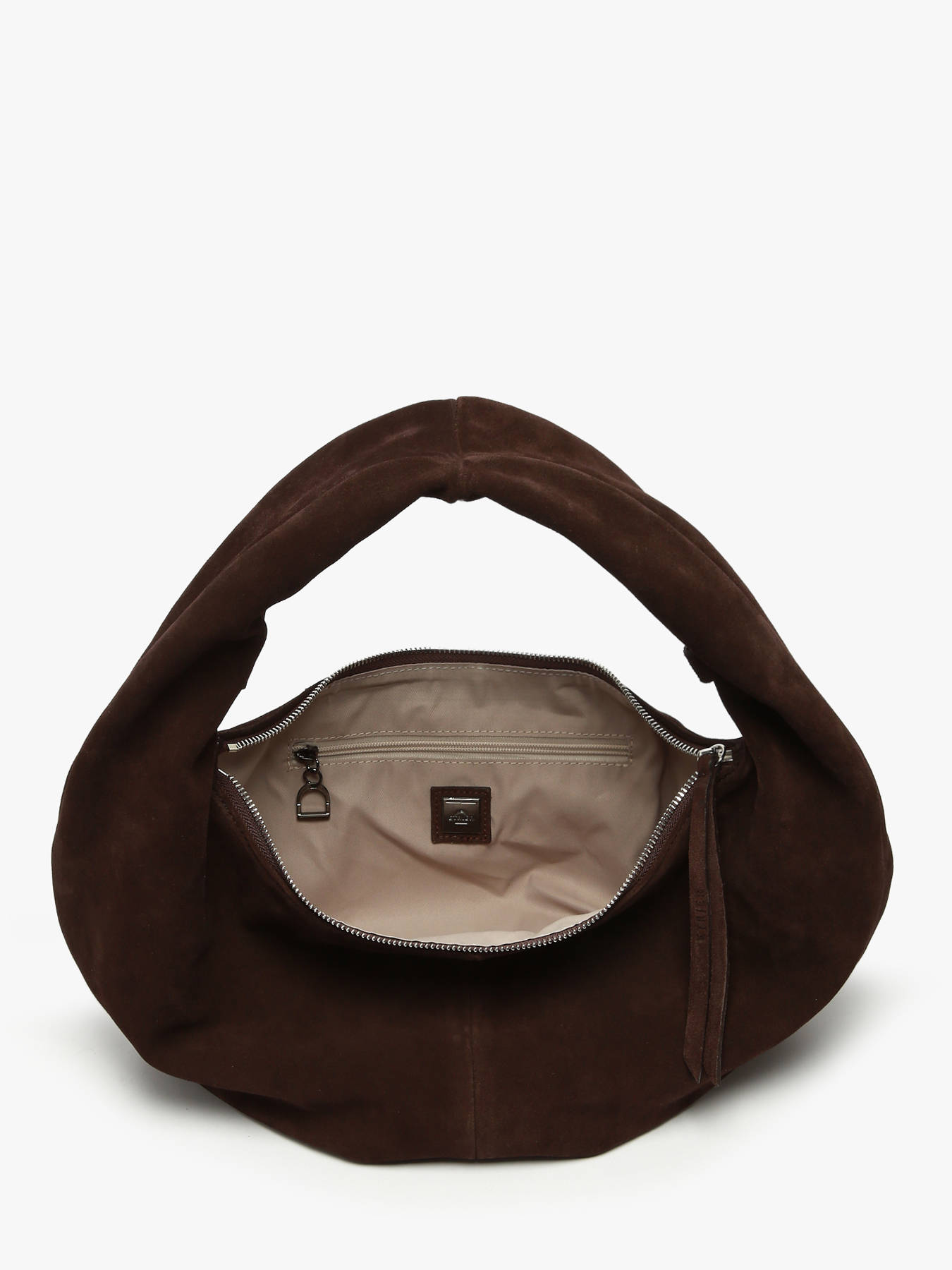De REBOND schoudertas van ETRIER, een waar handtekeningstuk, is een must-have van het seizoen. Met zijn elegante hobo-silhouet en soepel nubuck leer, belichaamt hij perfect de moeiteloze chic. Licht en praktisch, biedt hij voldoende ruimte voor je essentiële spullen en biedt een aanpasbare draagmogelijkheid: op de schouder voor een casual look of aan de hand voor een meer verfijnde uitstraling. Het tijdloze ontwerp wordt versterkt door een uitzonderlijke Italiaanse vervaardiging. Bedacht om zich aan te passen aan jouw stijl, is hij uitgerust met binnenbevestigingen waarmee je een schouderriem naar keuze kunt toevoegen voor een nog persoonlijker draagcomfort (schouderriem niet meegeleverd). Combineer hem met onze ketting (referentie: 709-EACC070L) voor een trendy en verfijnde look. Qua functionaliteit beschikt hij over een binnenzak met ritssluiting om je benodigdheden veilig op te bergen en sluit hij met een rits voor maximaal gemak.